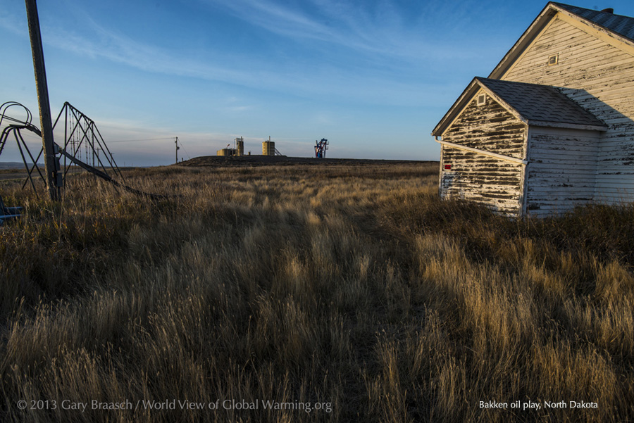 Abandoned school, new oil pad, Bakken oil field; North Dakota; <1 million barrels/day.