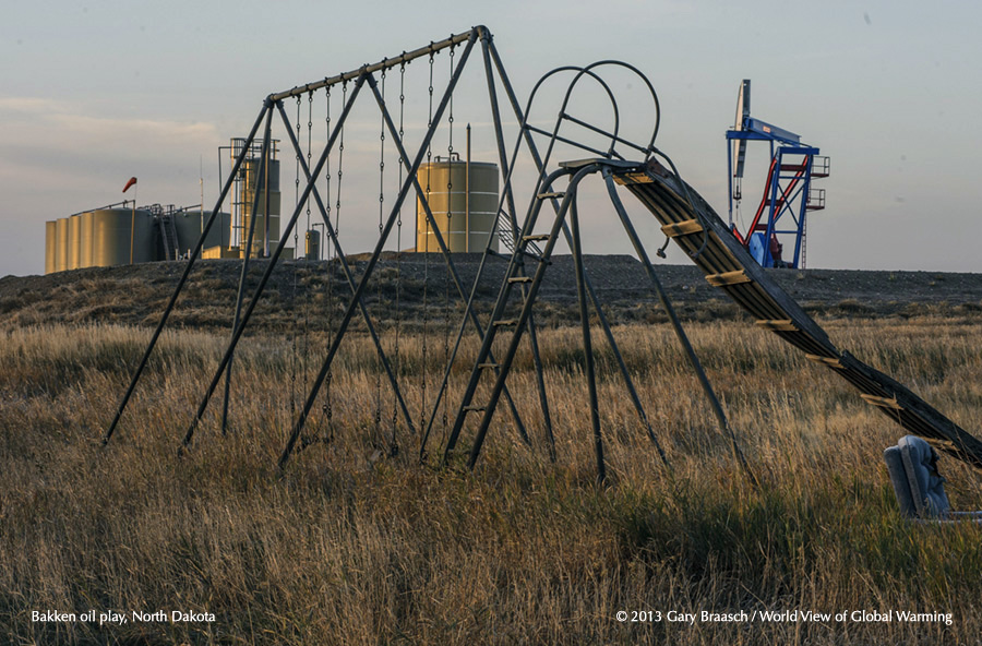 Playground & oil pad. Bakken oil field; North Dakota; <1 million barrels/day.