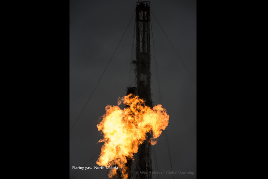 Flaring gas at Bakken oil field; North Dakota, an issue of waste & pollution.