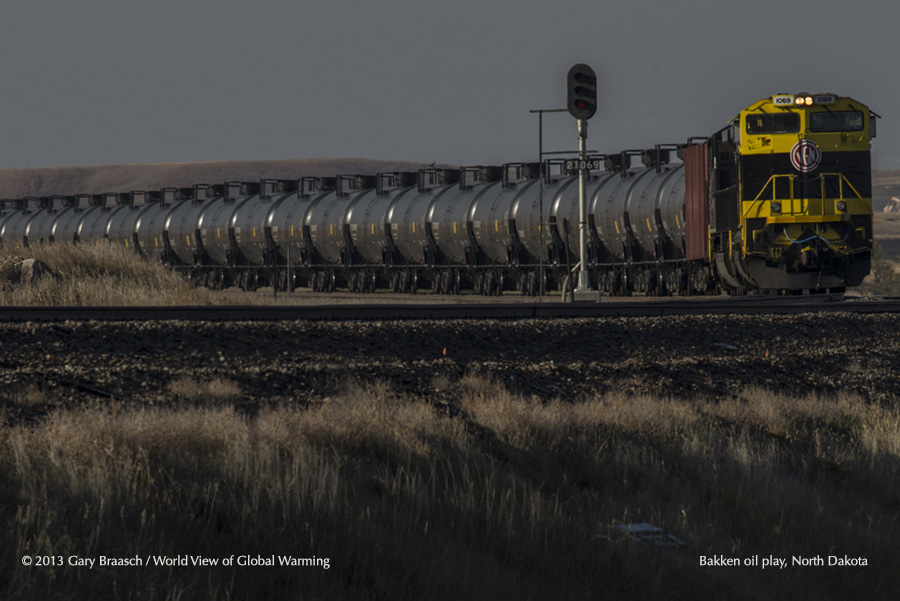 100-car train in Bakken oil field; oil rolls to East, South and increasingly, West